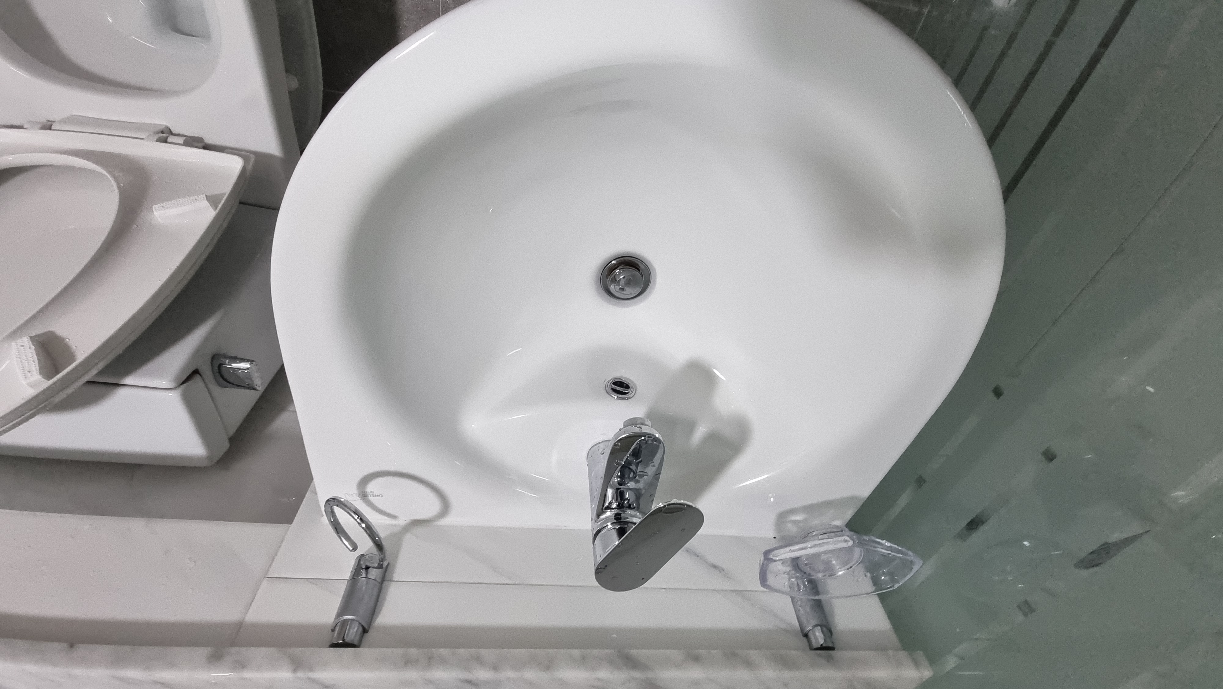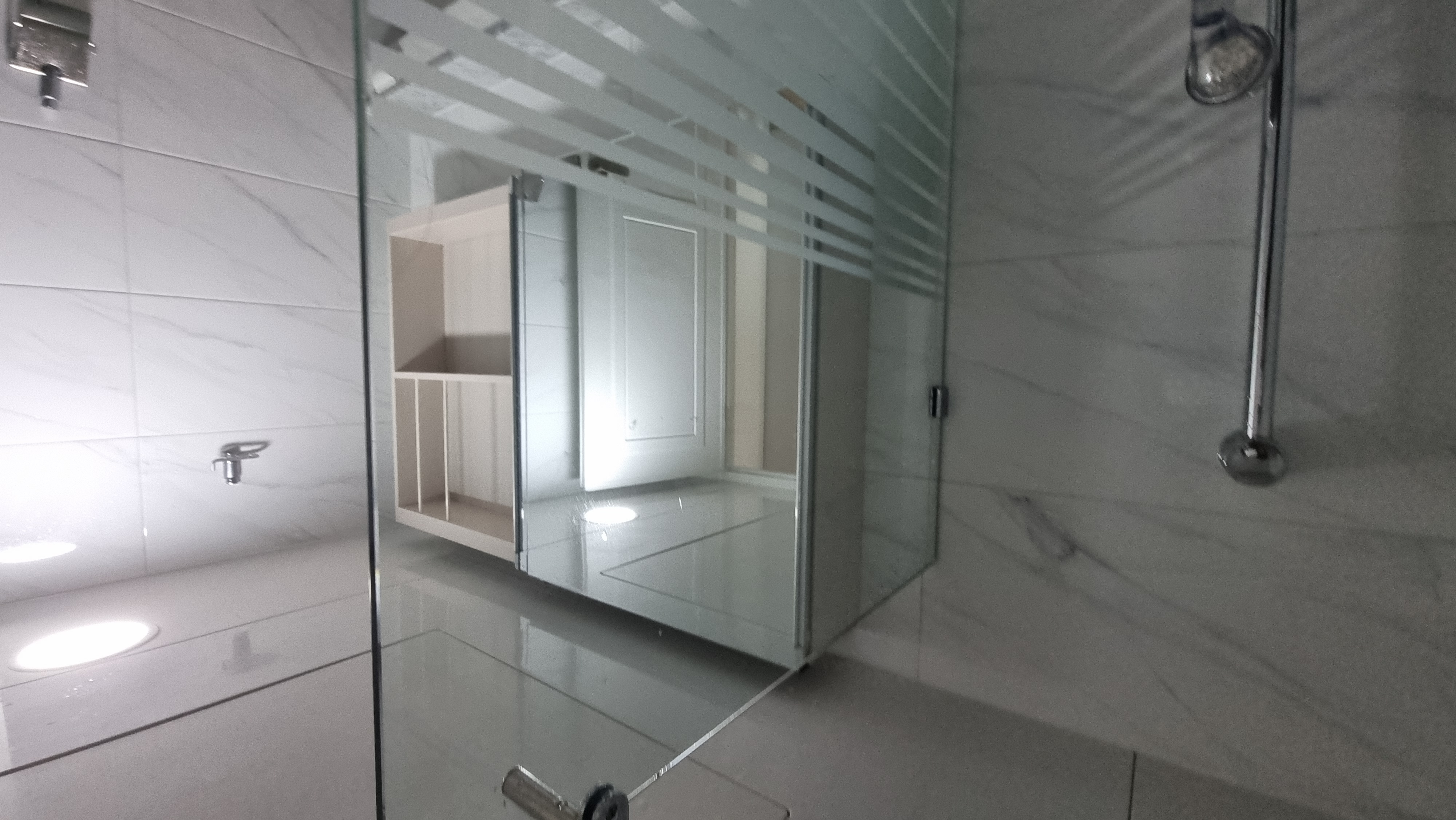 화장실입니다. 샤워부스 유리 물때 심각합니다.
