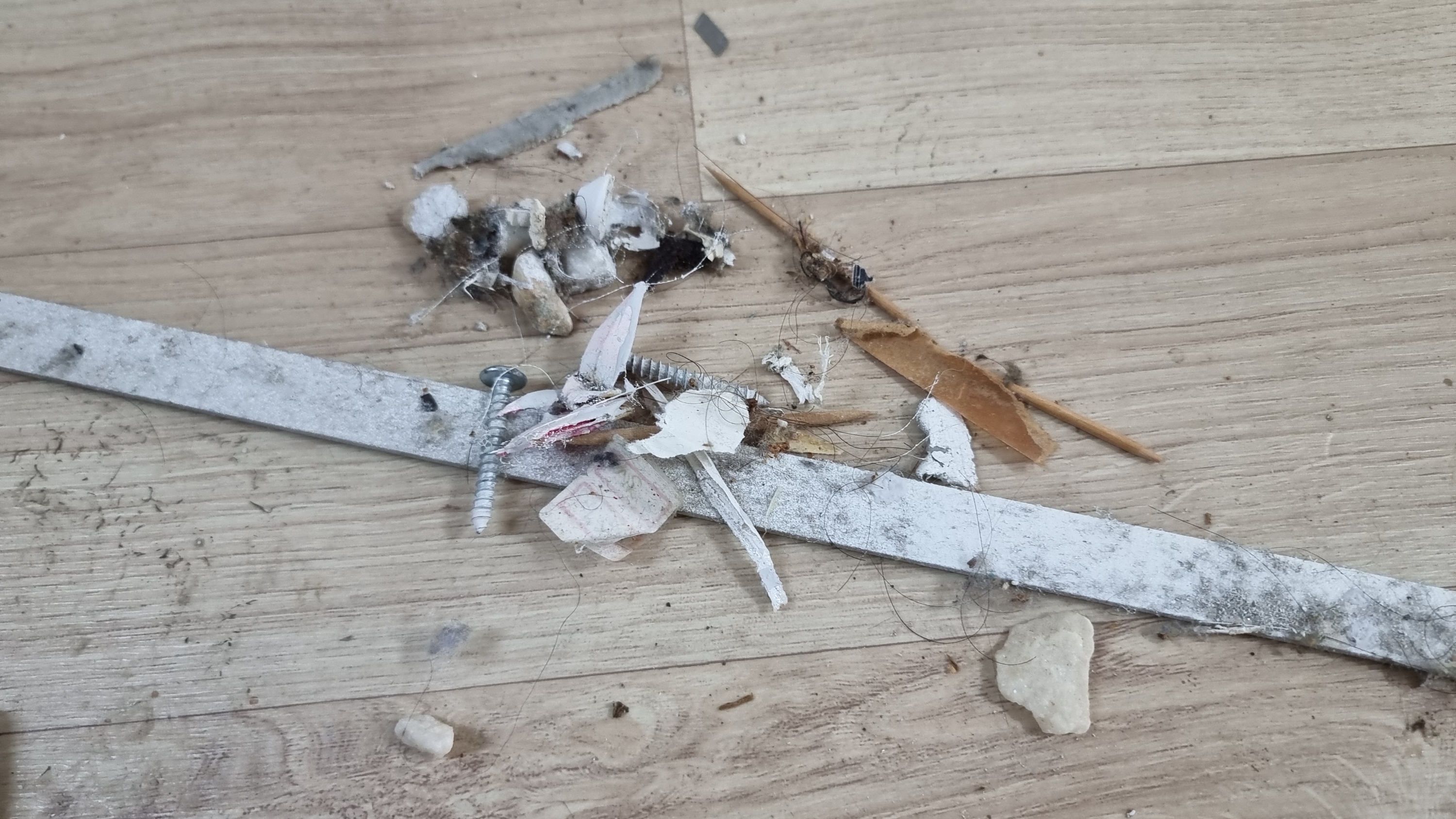 싱크대 밑에서 꺼낸 폐자재오 쓰레기들.